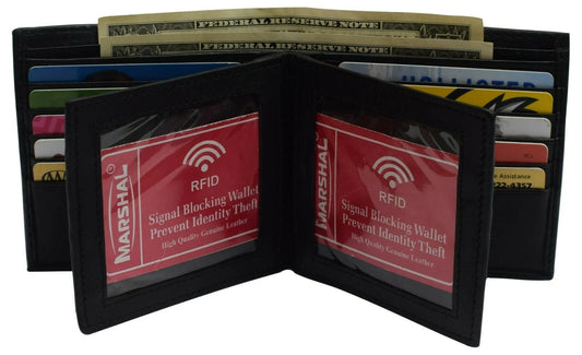 Mens European Cowhide Leather RFID Mens Wallet 2 ID-20 Card Slots Black