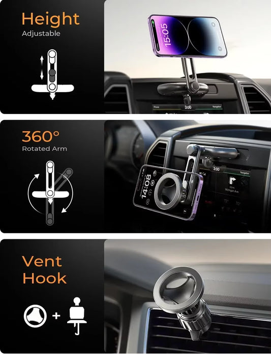 For Magsafe Car Phone Holder Suction Cup Vacuum Magnetic Phone Hholder 360° Rotatable Foldable Phone Holder Phone Accessories